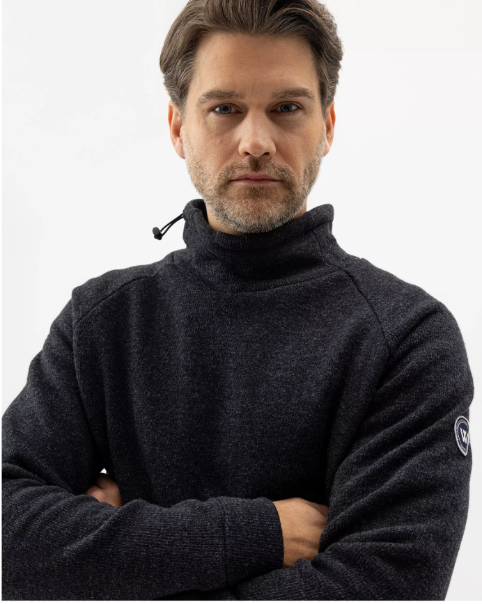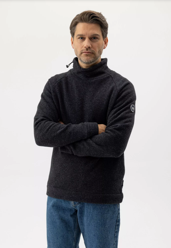 Wind-lined knitted sweater in a soft wool blend. Collar with drawstring and regular fit. The sweater has a windproof lining consisting of 96% polyester and 4% elastane. No chemicals are used to achieve the windproof function. Instead, the lining is manufactured with a special weaving technique that makes the fabric extremely tightly woven and therefore also windproof, while the fabric is breathable. The elastane makes the fabric stretchy, which means that it stops the wind but not movement. The fabric is marked with ÖKO-tex® Standard 100, which guarantees that the fabric is free from harmful substances.