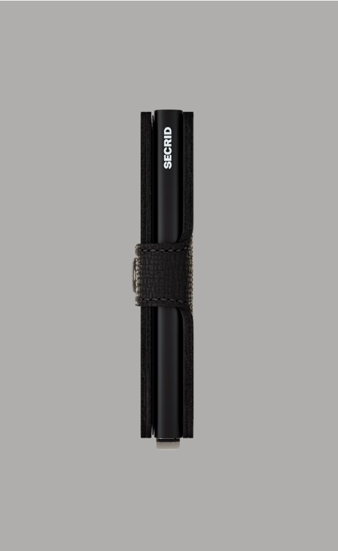 Small in size and surprisingly large in storage capacity, the Miniwallet combines the best of both worlds. The exterior holds banknotes, receipt and cards, while the aluminium Card protector allows you to slide out cards with one simple motion and protects them from bending, breaking and unwanted wireless communication. A press-clasp keeps the Mini Wallet from opening until you're ready.